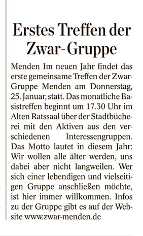 Westfalenpost: Auftaktveranstaltung am 21. November 2009 mit mehr als 60 Frauen und Männer.